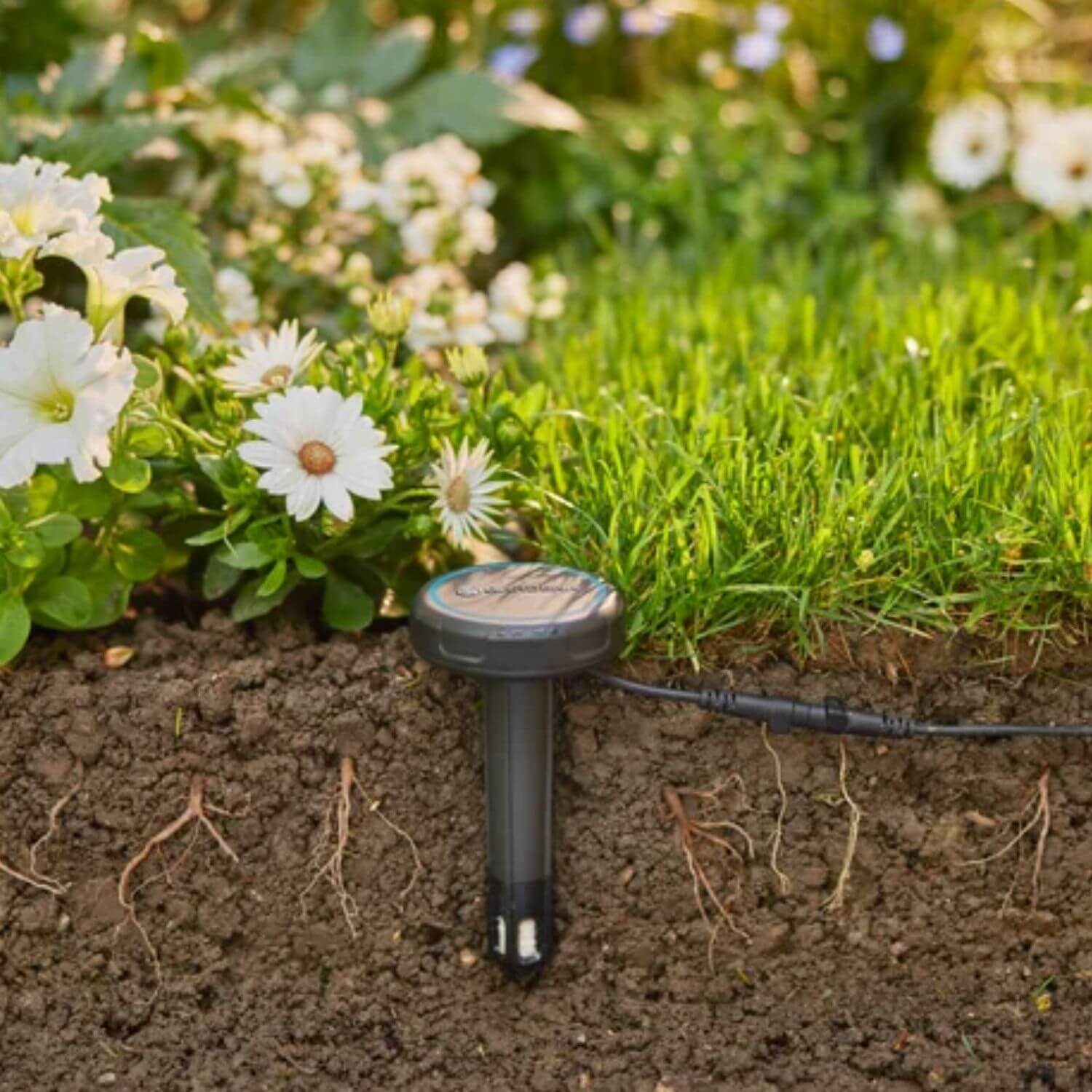 GARDENA senzor vlažnosti tla automatski mjeri vlažnost zemlje i omogućava inteligentno zalijevanje bilja tako da se voda koristi samo kada je to zaista potrebno. Senzor se povezuje sa GARDENA računalom za navodnjavanje i prenosi podatke o trenutnoj vlažnosti tla, što omogućava preciznu kontrolu ciklusa zalijevanja i uštedu vode. Zbog kompaktne veličine i niske visine, senzor se može koristiti na travnjacima, cvjetnim gredicama, pa čak i u manjim biljnim posudama bez ometanja košnje travnjaka ili rada robotskih kosilica.