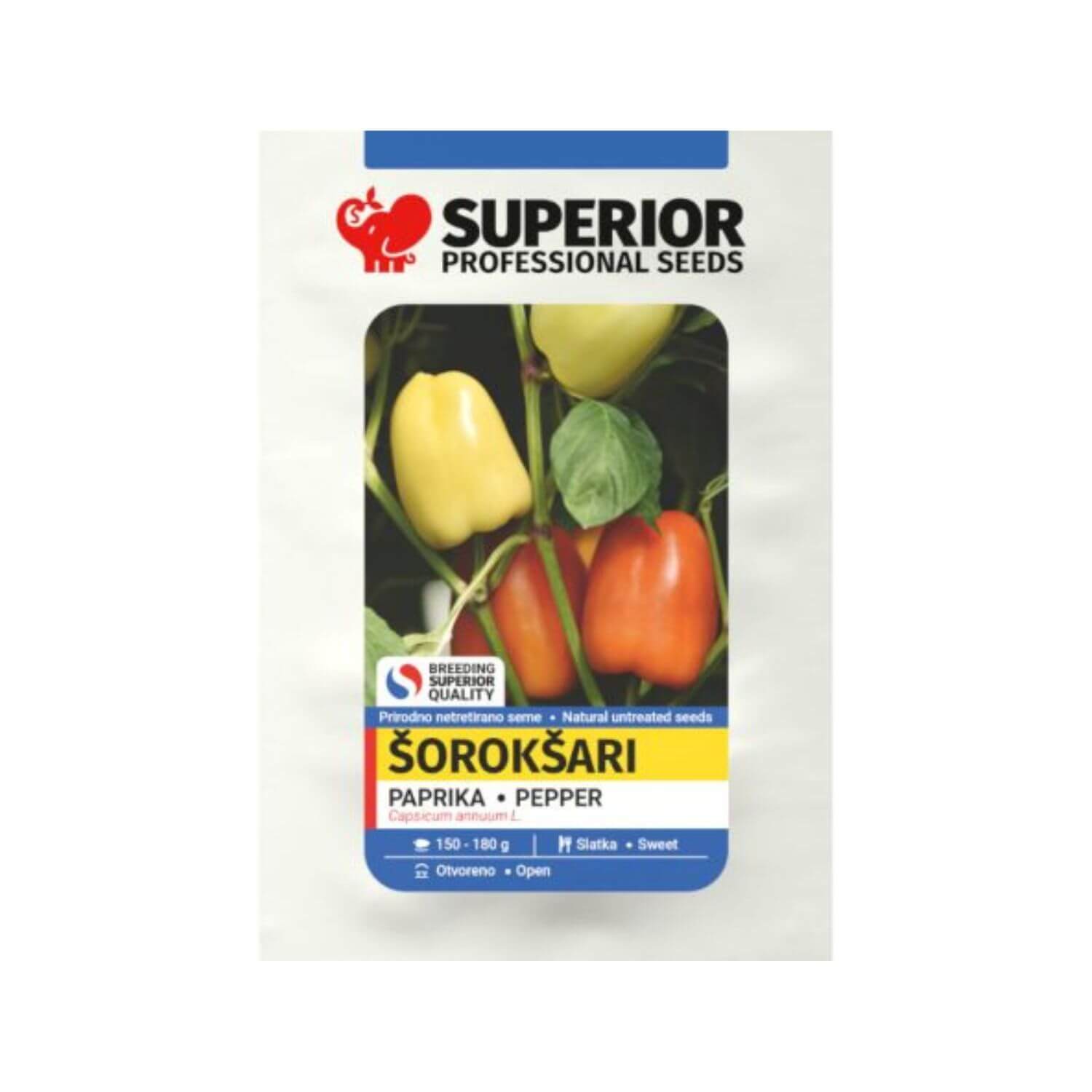 Paprika Šorokšari je legendarna i jedna od najrasprostranjenijih sorti slatke paprike u tipu babure, koja se na našim prostorima smatra standardom za pripremu punjenih paprika. Ova rana sorta odlikuje se bujnim, niskim rastom sa plodovima koji na stabljici stoje uspravno (štrčeći), što olakšava berbu i smanjuje rizik od truljenja uslijed dodira sa tlom. Plodovi su pravilnog četvrtastog oblika, masivni, mliječno žute boje u tehnološkoj zrelosti, dok potpunim sazrijevanjem prelaze u svijetlo crvenu.